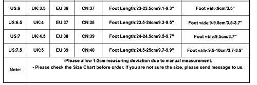 Binding : Apparel Product Description US:6 UK:3.5 EU:36 CN:37 Foot Length:23-23.5cm/9.1-9.3" Foot wide:9cm/3.5" US:6.5 UK:4 EU:37 CN:38 Foot Length:23.5-24cm/9.3-9.5" Foot wide:9-9.5cm/3.5-3.7" US:7 UK:4.5 EU:38 CN:39 Foot Length:24-24.5cm/9.5-9.7" Foot wide:9.5cm/3.7" US:7.5 UK:5 EU:39 CN:40 Foot Length:24.5-25cm/9.7-9.9" Foot wide:9.5-10cm/3.7-3.9" 0