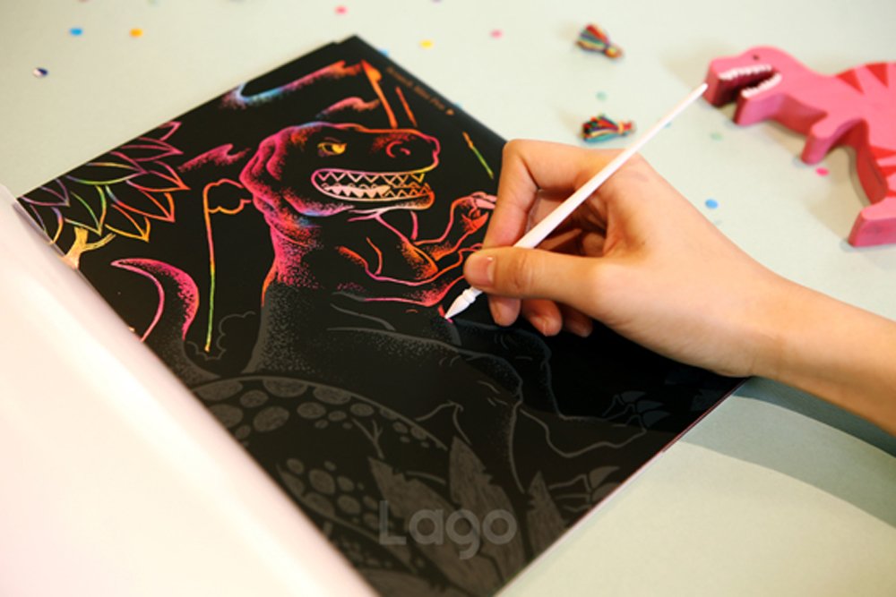 Includes: Dinosaur 4 pcs / plain scratch paperboard 4 pcs / scratch pen 1 pc