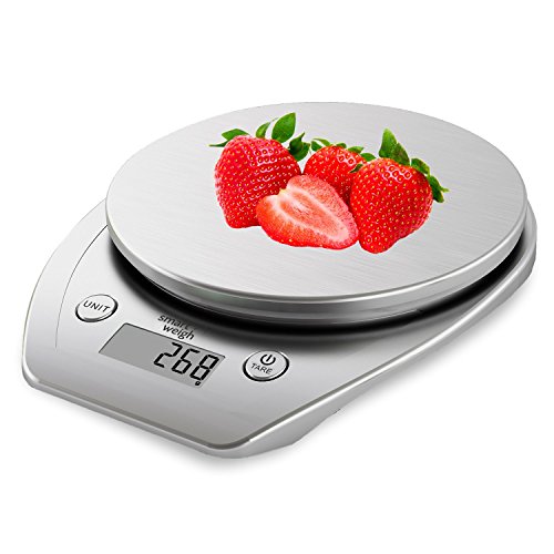 Smart Weigh Multifunction Digital Kitchen and Food Scale with Stainless Steel Platform, Large LCD Display and Six Weighing Modes, 11lb/5kg x 1g/0.1oz , Silver