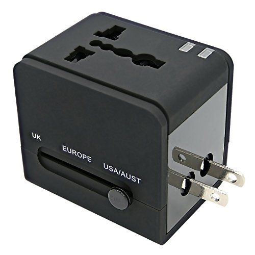 Yukeemi Universal Worldwide Travel Adapter Plug BEST International AC Power Plug [US UK EU AU] Wall Charger With Dual USB Charging Ports, with Black Box for Iphone Ipad Android Phone PSP LAPTOP -Black