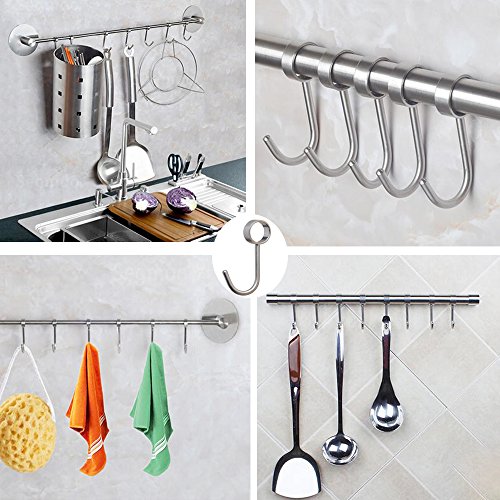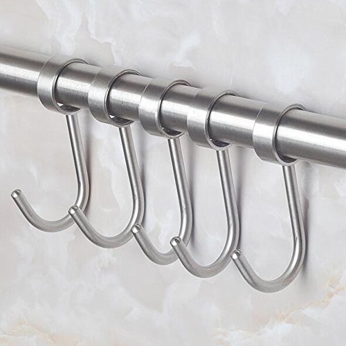 - User friendly and safe,there is no need to worry with tools or fret over putting holes in your beautiful walls. Those hooks easily hang on existing pipes without the need for nails,screws,or adhesives.Heavy duty stainless steel to make sure strong and safe.