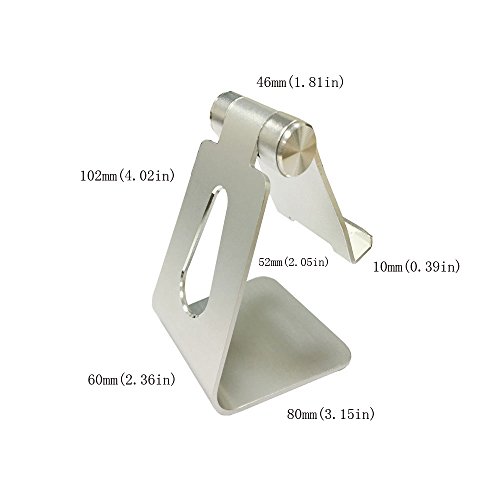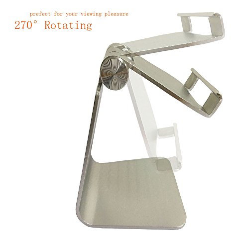 Desktop Cell Phone Stand, Universal 270 Degree Multi-Angle Rotatable Aluminum Alloy Stand Holder for all Android Smartphone, iPhone6 6s 7 Plus 5 5s 5c charging, Black,Silver (Silver)