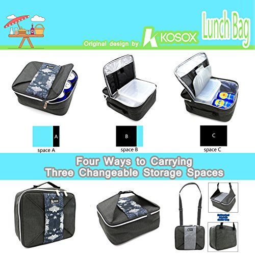 Thermal Insulation Lunch Bag, KOSOX New Detachable Color Printing Oxford Lunch Tote Box with Portable Belt & Shoulder Strap, Organize for Diet Management (Black White Printing)