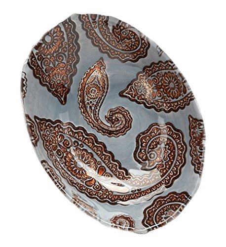 - This hard to find glass oval bowl is hand decorated with a gold paisley pattern on a dramatic background