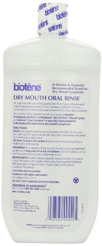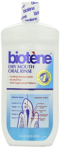 -. Binding : Health and Beauty -. Feature : A soothing mouthwash that cleans and refreshes the mouth / Uses the LP3 salivary enzyme-protein system / Gently cleans a dry mouth, moisturizing minor irritation / Pack of 3 / Helps protect against the odors associated with dry mouth -. Label : LACLEDE INC -. Manufacturer : LACLEDE INC -. ProductGroup : Health and Beauty -. ProductTypeName : HEALTH_PERSONAL_CARE -. Publisher : LACLEDE INC -. Studio : LACLEDE INC -. Title : BIOTENE MOUTHWASH ALC FREE 33.8 OZ (Pack of 3)