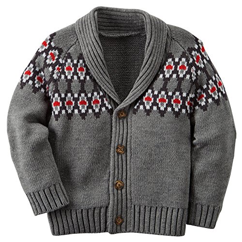 CARTER'S BOY'S FAIR ISLE GREY KNIT BUTTON FRONT CARDIGAN (5T)