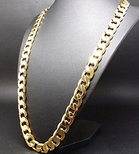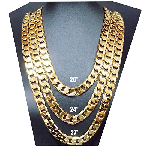 -. Title : Gold Chain Necklace 9MM 24K Fashion Jewelry Diamond cut Smooth Shiny Miami Cuban Link Hip Hop