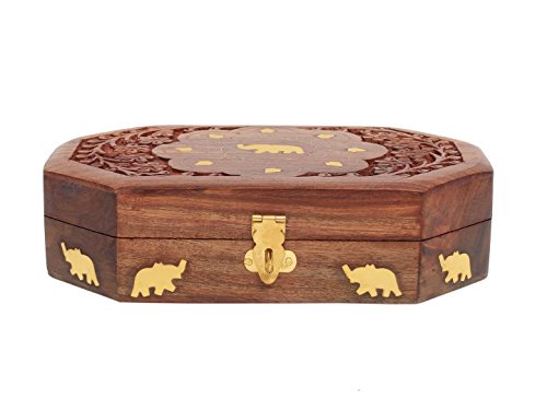 Xmas or Thanks Giving Day Presents, Wooden Jewelry Box, Vintage Box Inlay-Carved Storage Box, Brown Color Jewelry Box, Keepsake Box, Women’s Jewelry Organizer Box - 8 X 5 Inch