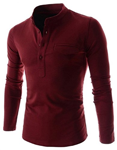 -. Feature : タイトなスタイリングで、男らしく決まるヘンリーネックのトップスです。※海外品のため小さめのお作りになっております。普段着ているサイズより2サイズほど大きいものをおすすめいたします。細身の方も普段着ているサイズより1サイズ上をおすすめいたします。 / すっきりとしたその風格は、渋い大人の男性を演出してくれます。 程よい薄手の生地ですので、体を動かすスポーツ・ウォーキング時にも快適に着用していただくことができます。また、肌寒い季節にはシャツやパーカーのインナーとして使うと、ヘンリーネックがアクセントとなって首元を飾ってくれます。 / シンプルなデザインですので、ジャケットやMA-1、パーカー等と合わせていただくとダンディからスポーティーまでメリハリのあるコーディネートを作ることができます。 主張しすぎないデザインは落ち着いた大人の男性のお洒落感を引き出すことができ、その他のアイテムの引き立て役ともなってくれます。 / 一枚でサラリと着ていただいてもスマートに決まるトップスですが、その他のアウターと一緒に合わせることで、渋く紳士風な着こなし・お兄さん系のクールな着こなし、ちょい悪なダンディな着こなしまで幅広いファッションのマストアイテムとなるでしょう。 / ボディラインを美しく魅せることができるため、男性の強さと色気を醸し出してくれます。ブラック・ホワイト・ワインレッド・ダークグレー・ライトグレー・ネイビーとカラーバリエーションが多く選べる商品となります。深みのあるダークトーンは、その他のカラーとも相性が良いので、デニムやカラーチノパンからコーデュロイパンツまで多くのボトムスと合わせることができます。