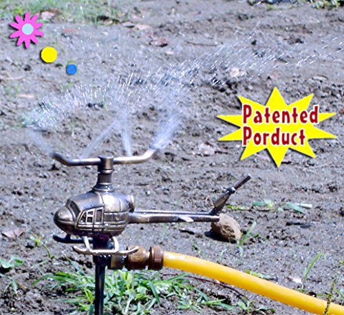 -. Feature : Decorative brass helicopter sP.R.Inkler - 11" inches W / Ancient verdigris polished finish / Made in Taiwan / nice quality / Great idea for garden gift / This sP.R.Inkler came with a plastic quick connecter for 1/2" inches hose.
