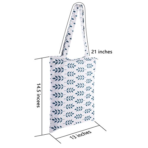 Kloud City Lady Women Olive Leaf Beige Color Printed Patten Canvas Zipper Tote Shopping Bag for Outdoor