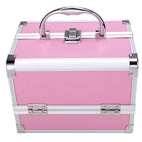 - Durable material: The aluminum cosmetic makeup train case is made of fine aluminum frame, reinforced corners, heavy-duty tray, solid pull handle. The surface is xxidized and processed precisely. It is constructed with hardware fittings, high quality PU and MDF, and so on. The velvet material can have the effect of shatterproof and beauty.