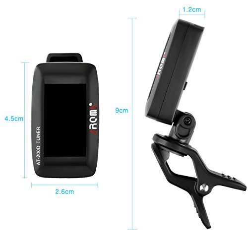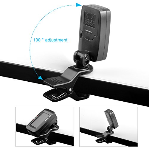 ✔︎ FLEXIBLE AND EASY TO USE OF ELECTRONIC TUNER: this tuner's arm can 360-degree rotation and body can 100-degree adjustment; it can let you easy to adjust the tuner position to have a good viewing angle. This tuner has small and exquisite appearance, convenient to carry along