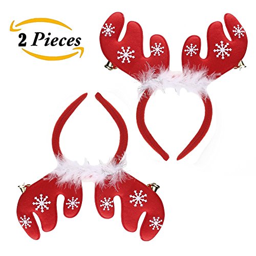 Reindeer Antlers Headband: 2 Packs Kids Christmas Reindeer Antler Headband Holiday Party Santa's Reindeer Pack Headbands for Party Christmas and Other...