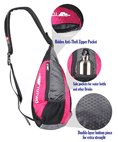 Product Description SMALL YET SPACIOUS SLING BAG FOR MEN WOMEN Versatile compact backpack - Perfect as city daypack and for traveling as carry on luggage LIGHTWEIGHT CROSSBODY DESIGN Made of a lightweight canvas like polyester material featuring a spacious main pocket, this bag can hold a camera, iPad or a small laptop computer (up to 10") HIDDEN ANTI-THEFT POCKET WATER BOTTLE HOLDER This bag features several smart organizer pockets, such as a hidden anti-theft pocket a external water bottle holder Dimension Size: 25.5 × 14× 40 cm (10× 5.5 × 15.7 Inches). It is can used as a chest pack, shoulder bag, messenger bag, travel bag. Fit both regular and plus-size person Practical Great for Excursion, travel, hiking, mountaineering, leisure or outdoor living and sports. Or trips to the amusement park, diaper bag (carry around diapers and wipes) Internal - The large compartment with a small Ipad inner pouch fit camera, umbrella, textbooks or even a light jacket. A eraphone hole connected to outside Stands Tough Against Wear Tear: Made of durable, water-resistant polyester canvas with top-quality zippers and durable strap clip. Includes reflective material strip for added safety Heavy duty abrasion resistant SBS metal zipper