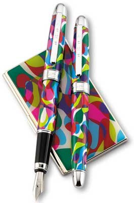 -. Feature : Screen P.R.Inted design covered in clear lacquer for protection / Matching polished chrome trim on cap, barrel, and clip / Contemporary, lively design great for any time of year / Carry a piece of modern artwork with you anywhere you go / Cartridge or converter refillable