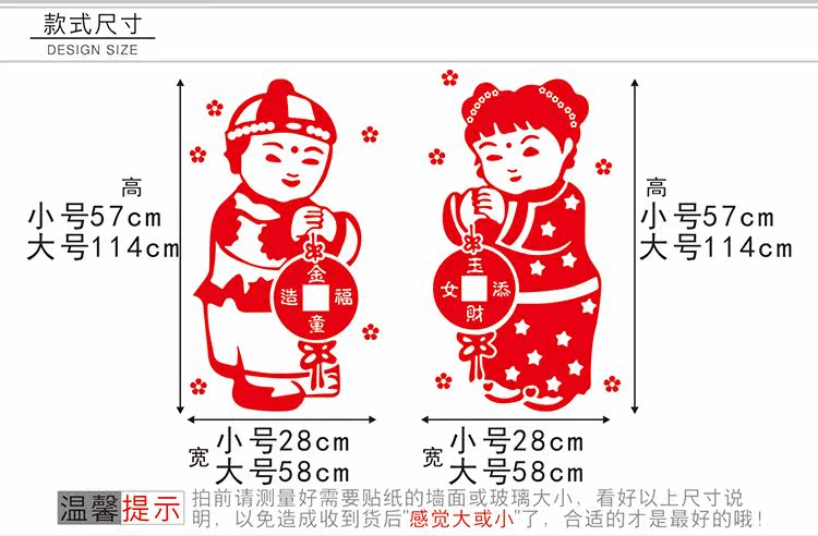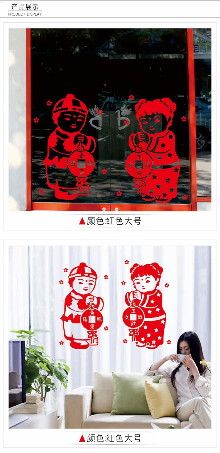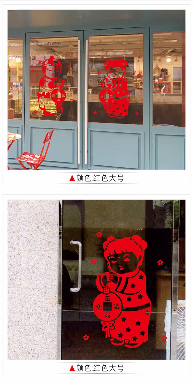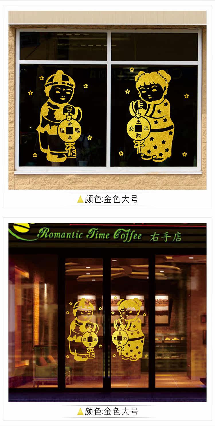 元旦新年公司商场布置墙贴纸春节装饰品过年店铺玻璃窗人物门贴画