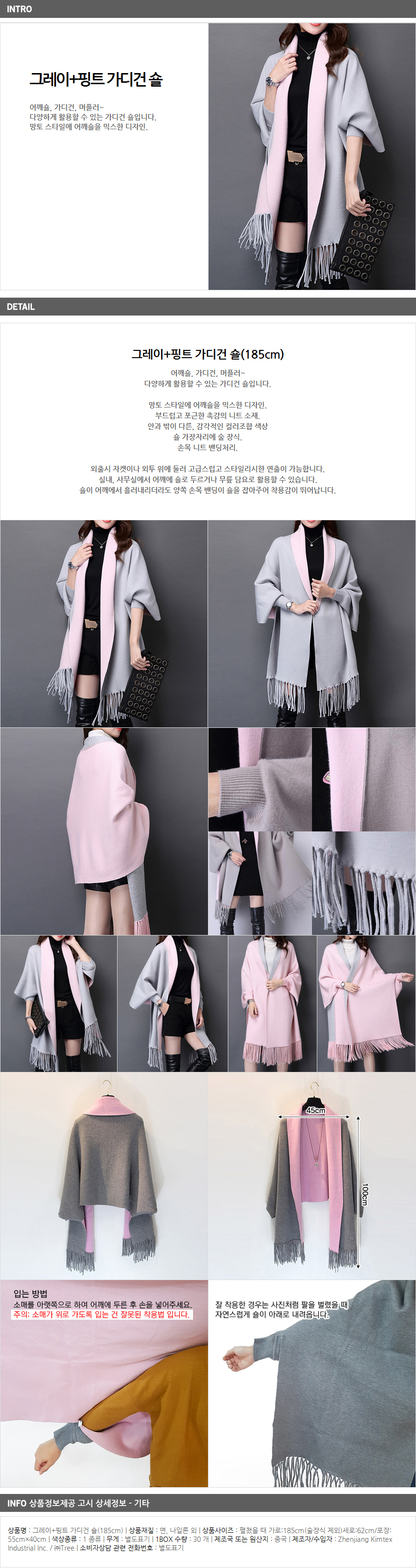 Muffler Cardigan 185cm Women Shoulder Shawl Gray