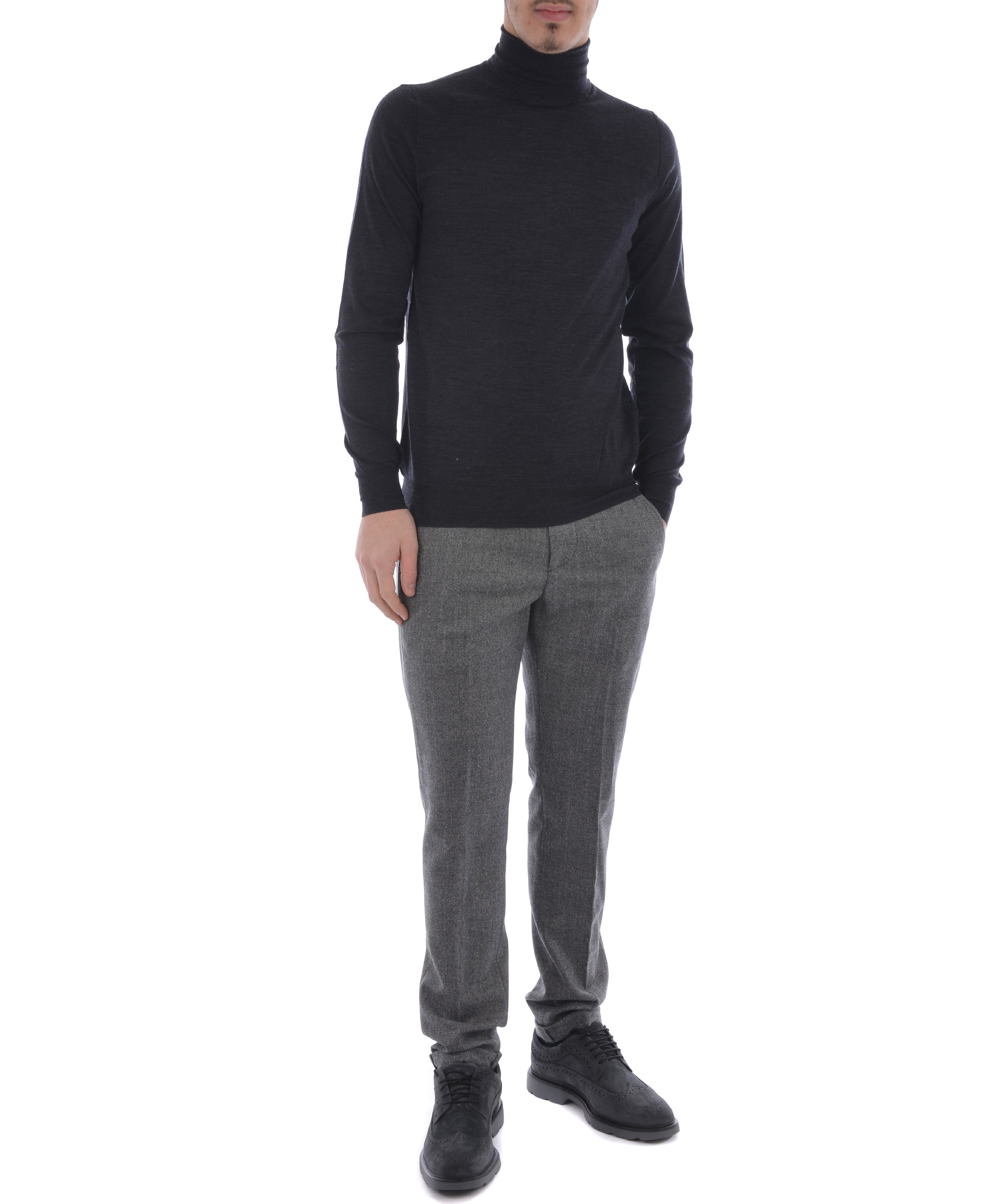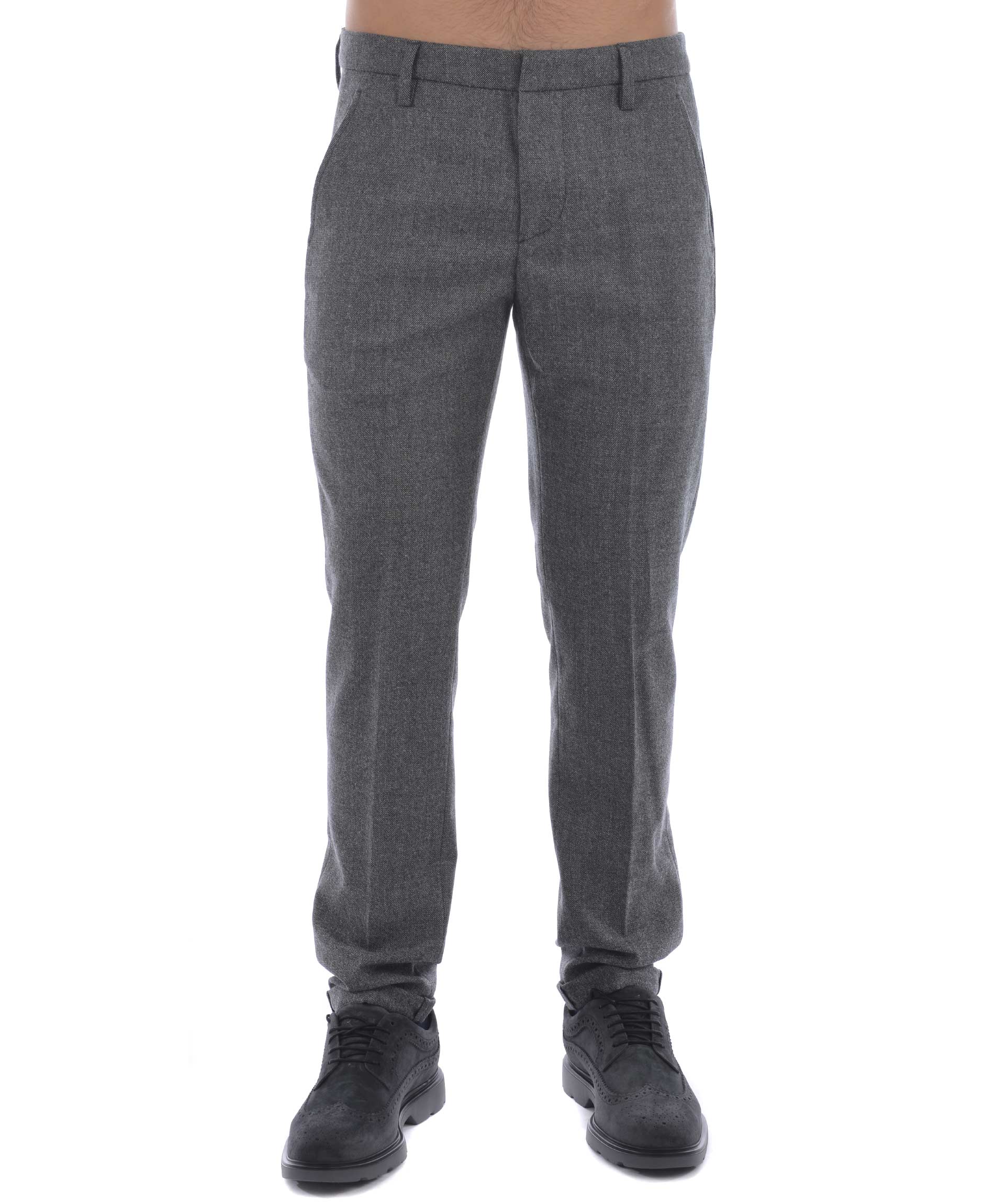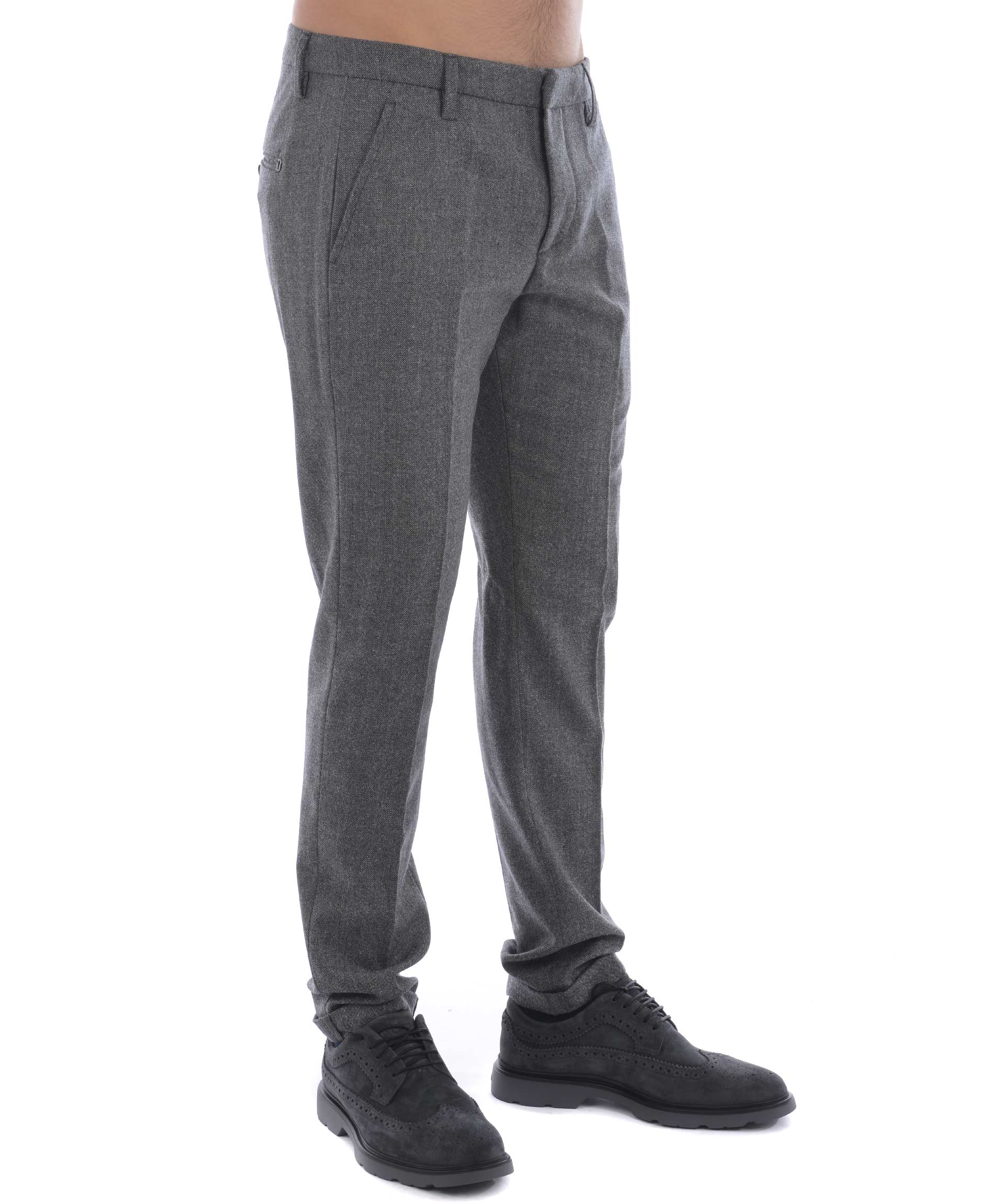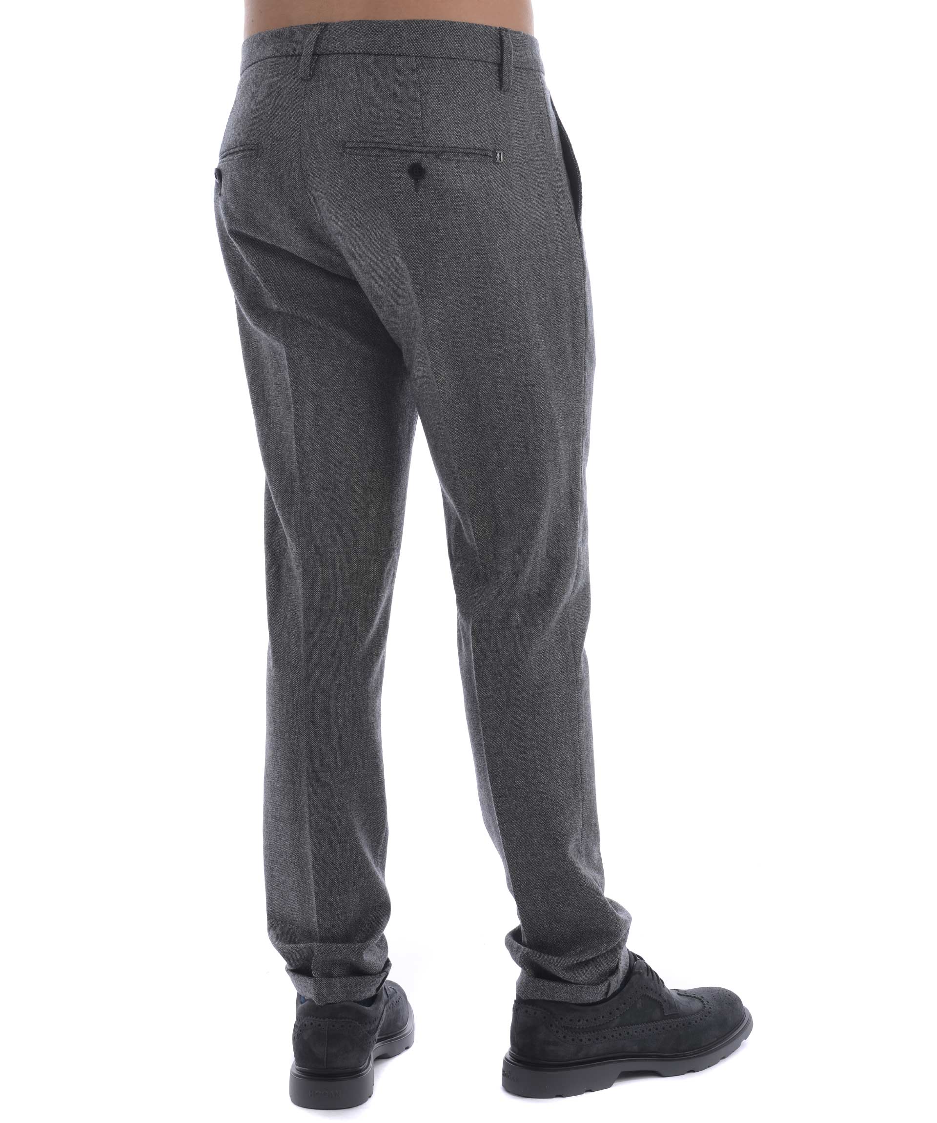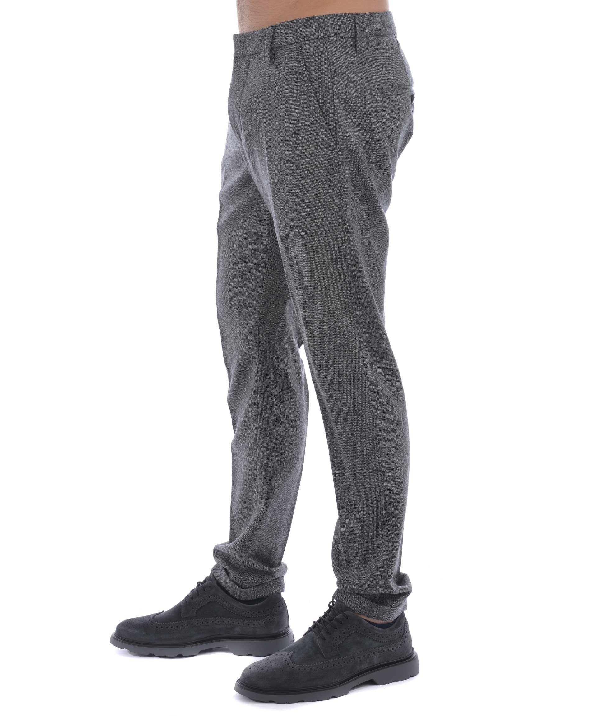 Pantaloni Dondup in lana jacquard stretch Grigio scuro. Tasche frontali diagonali. Tasche posteriori a filo con bottone. Chiusura con zip e gancio. Gamba dritta. Logo in metallo sulla tasca posteriore. Misura in foto 34 99% lana, 1% elastene
