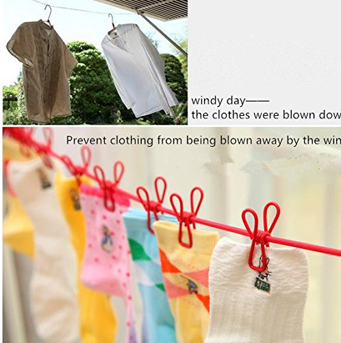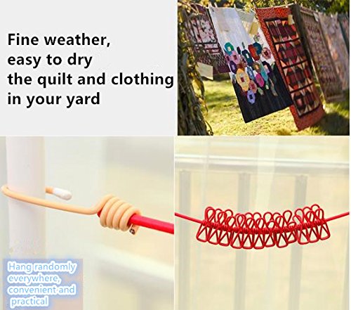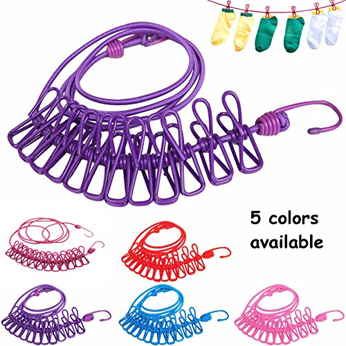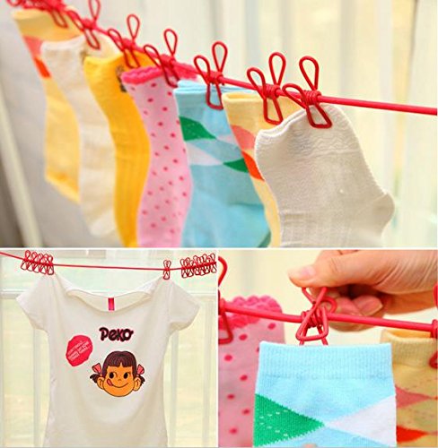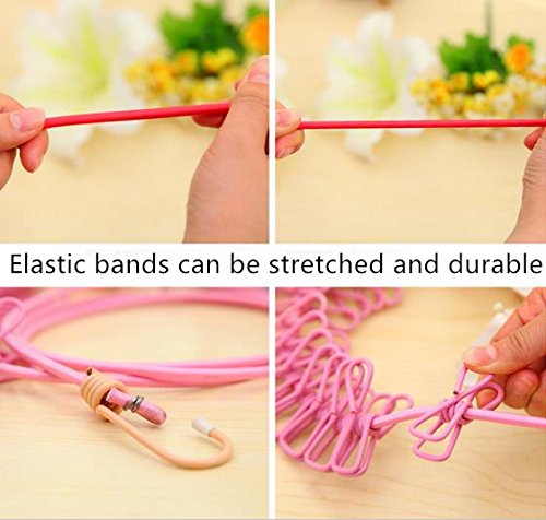 King&Pig Portable Travel Elastic Clothesline Adjustable Clothesline with 12pcs Clothespins for Outdoor and Indoor Use+1 free portable folding hangers,5 color optional (pink)