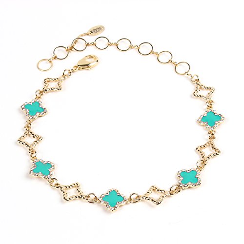 Gold-tone brass enamel clover choker necklace with Austrian crystals and lobster closure