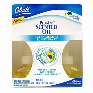 Studio : S.C. Johnson Son, Inc. Publisher : S.C. Johnson Son, Inc. Binding : Health and Beauty Product Description Use Glade PlugIns Scented Oil Lasting Impressions refills to fill your room with a delightful, long-lasting fragrance. The package includes a Clean Linen and a Sunny Days refill. The refills fit all Glade PlugIns Lasting Impressions oil warmers. You can also adjust the Glade scented oil's fragrance level to produce the right amount of scent in each room. 0