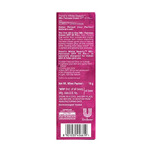 1 X18g Ponds White Beauty All-in-one Bb+fairness Cream Spf30pa++