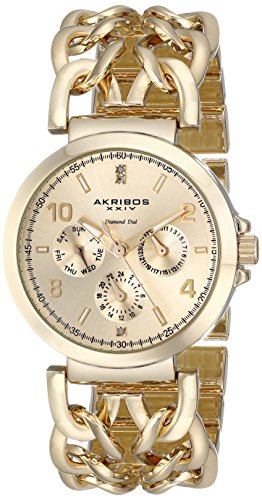 -. Title : Akribos XXIV Women's AK746YG Lady Diamond Gold-Tone Watch with Link Bracelet
