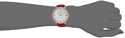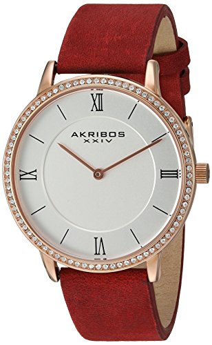 -. Title : Akribos XXIV Women's Quartz Rose-Tone Case with Swarovski Crystal Accented Bezel and Silver-Tone Dial on Red Genuine Leather Strap Watch AK924RD