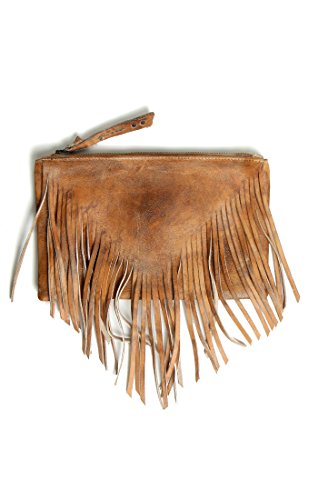 Adjustable woven crossbody strap. Magnetic flap closure with fringe detail. Lined interior. Flat bottom. Interior back-wall zip pocket.