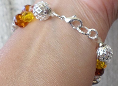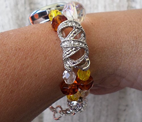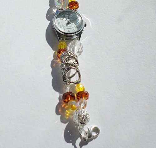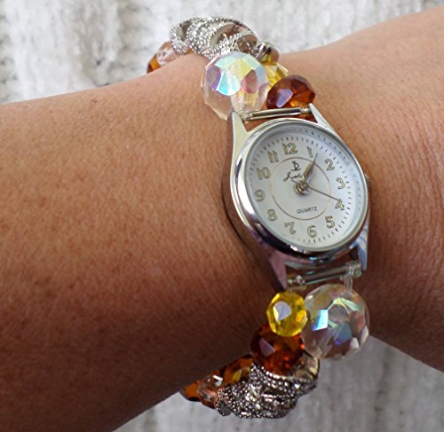-. Title : 6 1/2" stretch watch bracelet made with yellow, brown and clear czech crystals and a lobster clasp.