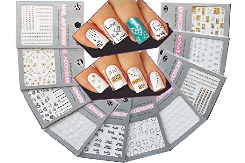 [Product Information]- ♥ SUPER-ADORABLE 3D NAIL DECALS: 10 sheets. The design variety will set you on the great journey creating your fantasy nails and will last for a long time