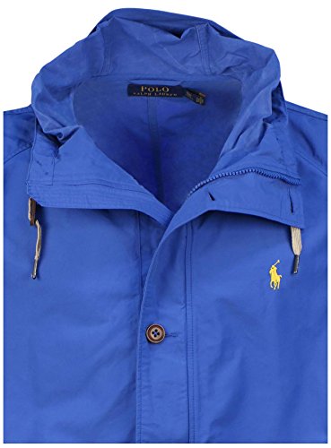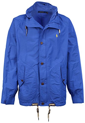 -. Binding : Apparel -. Brand : Polo -. Color : Tuthill Royal Blue -. Department : mens -. Feature : Attached drawstring hood; Concealed full-zip front; Buttoned storm placket; Unlined / Raglan long sleeves with an adjustable Velcro tab at each cuff; Reinforced elbow patches / Gusseted underarms with ventilating metal grommets; 's signature embroidered pony accents the left chest / Angled buttoned-flap welt pockets at the waist; Interior Velcro flap patch pocket at the right waist / 26 inch length shoulder to hem (size Medium) -. ProductGroup : Apparel -. ProductTypeName : OUTERWEAR -. Title : Polo Men's Big & Tall Windbreaker Jacket-Tuthill Royal Blue