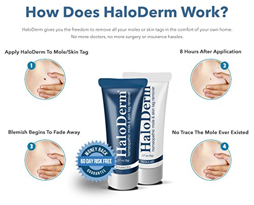 REMOVES 5 MOLES or SKIN TAGS – Unlike any other ordinary mole and skin tag removal cream, HaloDerm Advanced Skin Tag Remover can remove up to 5 stubborn skin tags on your face or body