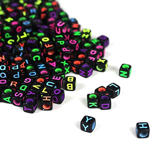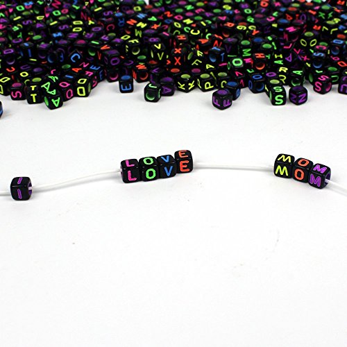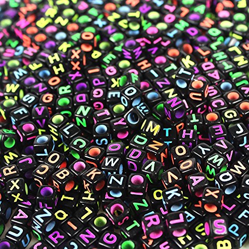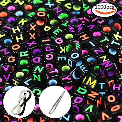 JPSOR 1000 Pcs Letter Beads with 1 Pair of Tweezers 1 White and 1 Black Cord Black Alphabet Beads Mixed Color Alphabet "A-z" Cube Beads for Jewelry Making for Kids DIY Bracelets, Necklaces