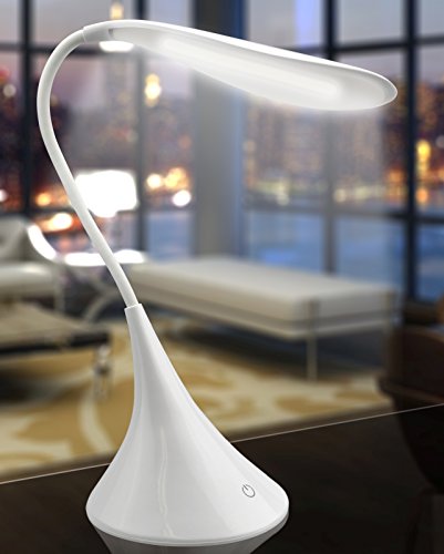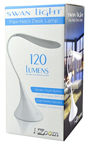 -. Feature : 7" Tall 12 LED 120 Lumens Swan Shaped Gooseneck Desk Lamp / Master On-Off switch on back and a 3-Way touch dimmer on the front / Operates off the included USB cord or Three "AA" Batteries (not inc.)