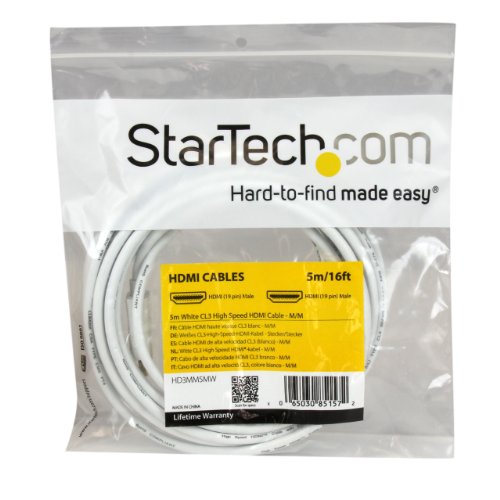 StarTech.com 5m 16 ft White CL3 In-wall High Speed HDMI Cable - Ultra HD 4k x 2k HDMI Cable - HDMI to HDMI M/M - Audio/Video, Gold-Plated