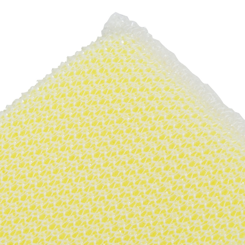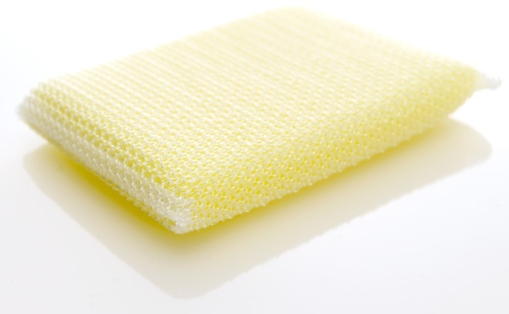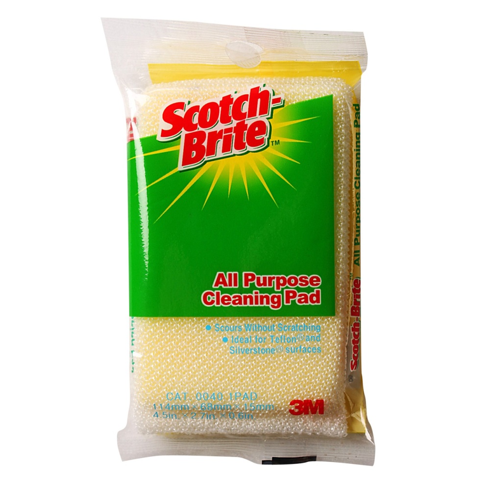 The Scotch-Brite® All Purpose Cleaning Pad consists of a yellow urethane sponge which helps soap lather while supporting the surrounding white nylon/polyester mesh. The main point of difference is the unique combination of slit film and fiber interwoven into mesh that “grabs” food and dirt and pulls it away.
