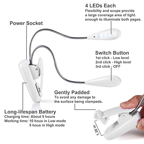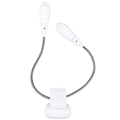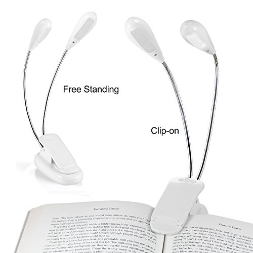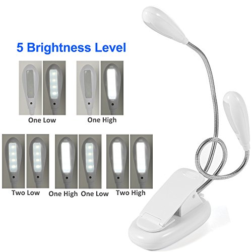 Clip On 8LED Reading Lamp Music Stand Light Flexible Dual Head Eye Care Desk Lamp with Adjustable Brightness For Study Piano E-reader Bed Headboard (White) B017GPE3PE