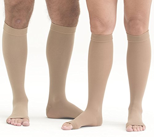 - Knee highs are available in beige and black, with an open or closed toe. Silicone top band also available, which stops the stocking from sliding or rolling down.