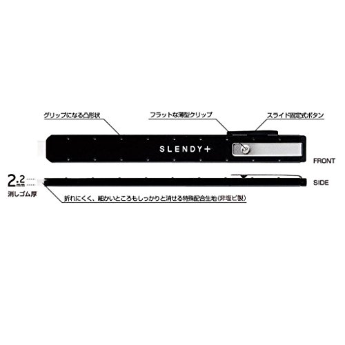 SEED Thin Steel Holder Eraser Slendy+, Black (EH-S-K)