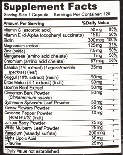 Also added are effective amounts of Alpha Lipoic Acid, Juniper Berry (powder) and Bitter Melon* *