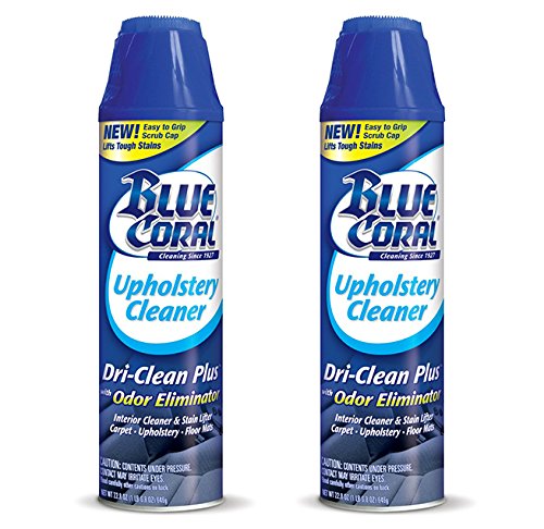 -. Feature : Bundle includes 2 22.8 oz cans of Blue Coral Upholstery Cleaner Dri-Clean Plus with Odor Eliminator. / Effective on grease, tar, coffee, lipstick, ink, blood stains and more / Interior cleaner lifts stains off of carpet, upholstery and floor mats / Easy-to-use brush cap helps remove ground-in stains and soils