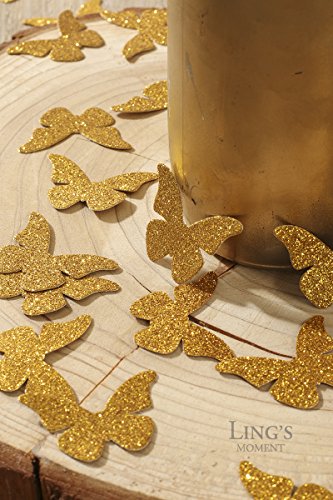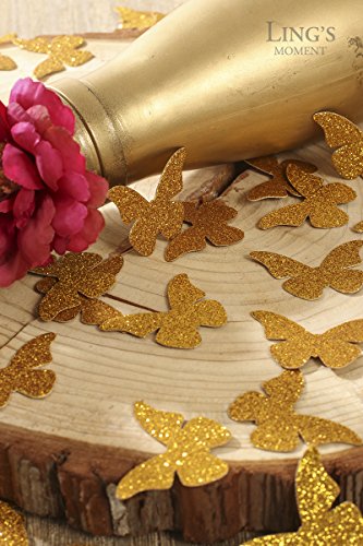 Ling's moment Gold Butterfly Confetti for Wedding party, Table Confetti, Garden Confetti, Festival Items & Party Decorations, Gold Glitter Paper Confetti, DIY Kits, 100 pcs