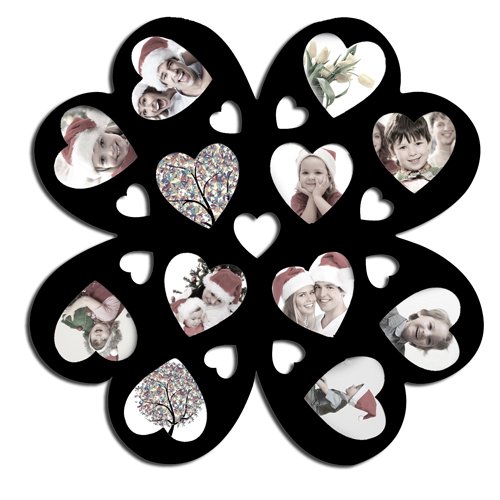 -. Title : Adeco Decorative Black Wood Wall Hanging Multi-Heart, Flower Collage Puzzle Frame, 12 Openings, 4''x4"