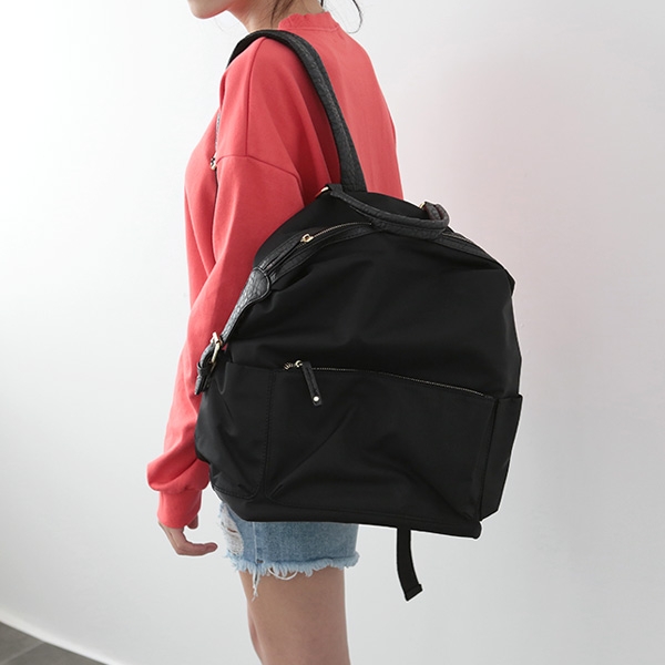 |  캐주얼하게 매치하기 좋은 베이직한 백팩이에요. 너무 크지도 작지도 않은 적당한 사이즈감으로 다양한 소지품을 수납해서 데일리하게 활용하기 좋은 아이템이랍니다! 굳이 소지품을 무겁게 넣지 않아도 자연스럽게 라인이 잡히구요. 스트랩은 조절이 가능해 체형에 맞게 자유롭게 조절해주시면 된답니다. 다양하게 활용하기 좋은 백팩으로 추천해드릴게요!       | COLOR | 블랙 / 그린 | | 제품 색상은 모니터에 따라 실제 색상과 차이가 있을 수 있습니다. | | | | FABRIC | 합성피혁 | | | | PRODUCT ION | 제조국 / 중국 | | 품질보증기준 / 소비자분쟁 해결기준에 따름 | | A/S 책임자 및 고객센터 / 감성가방 | | | | SIZE INFO | 사이즈는 측정 방법에 따라 1~2cm의 차이가 있을 수 있습니다. | | 스트랩 길이는 연결 고리를 제외한 길이이며, 최대 길이입니다. | | (단위:cm, g) | | 가로 길이 | 세로 길이 | 너비 | 손잡이 높이 | 스트랩 길이 | 무게 | | 39 | 36 | 18 | 15 | 41(조절o) | 810 |  |