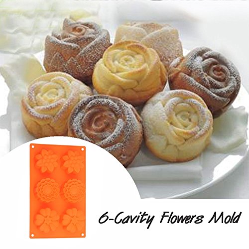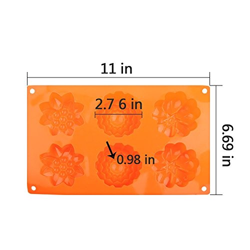 - 6-Cavity Flowers Silicone Muffin Mold - Approx 11.0*6.8*1.37inches; you can enjoy a more hassle-free candy, chocolate or soap making experience with an easy clean-up.