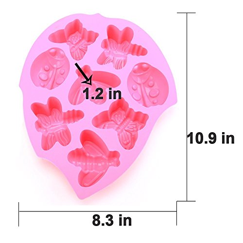 - 8-Cavity Insect Silicone Cake Mold - Approx 10.9*8.3*1.2inches; 8 fun shaped mini bug cakes(2 butterflies,2 dragonflies,2 ladybugs,and 2 bees).