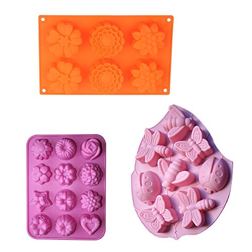 Goldenwide® BIG Combo for Silicone Handmade Soap Cake Mold - Included 12-cavity Flowers Mold, 6-cavity Flowers Silicone Muffin Mold and 8-cavity Insect Silicone Cake Mold