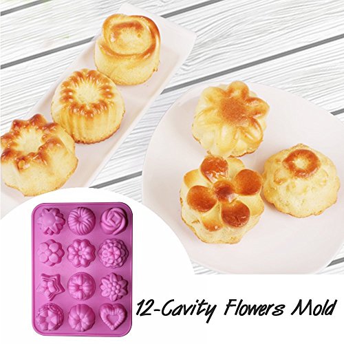 - 12-Cavity Flowers Mold - Approx 8.26*6.3*0.98inches; perfect for making cakes, pizza, bread, mousse, jelly, chocolate, pudding and fruit pies,ect.
